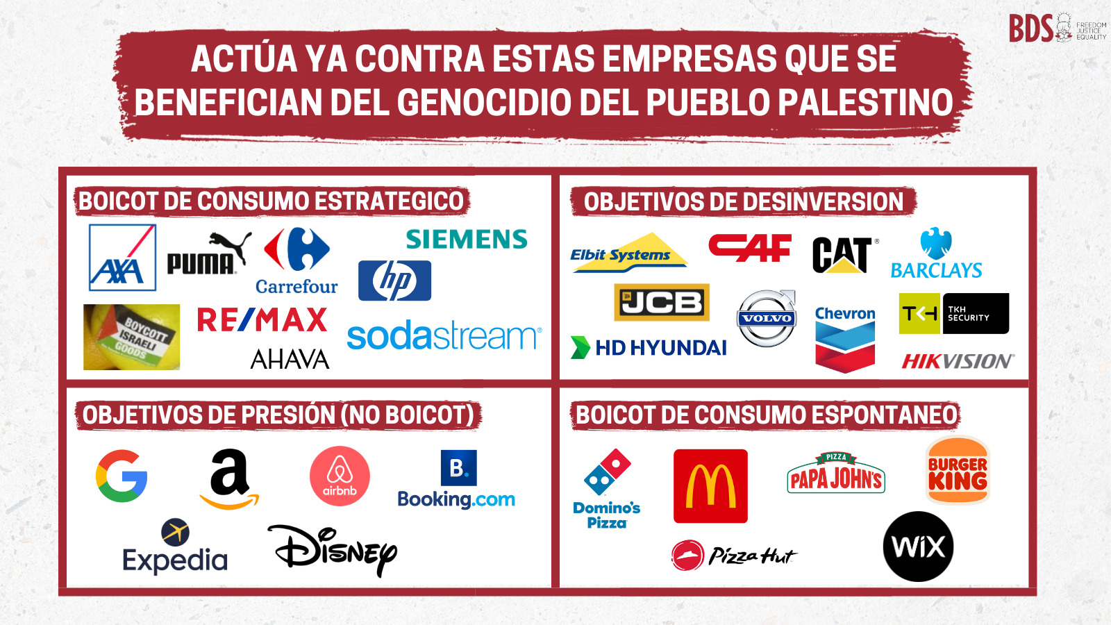 ¿Quieres hacer más? Puedes leer un poco más sobre el boicot a Israel. Te hacemos un resumen de las marcas a boicotear y porqué y te explicamos los distintos tipos de boicot.